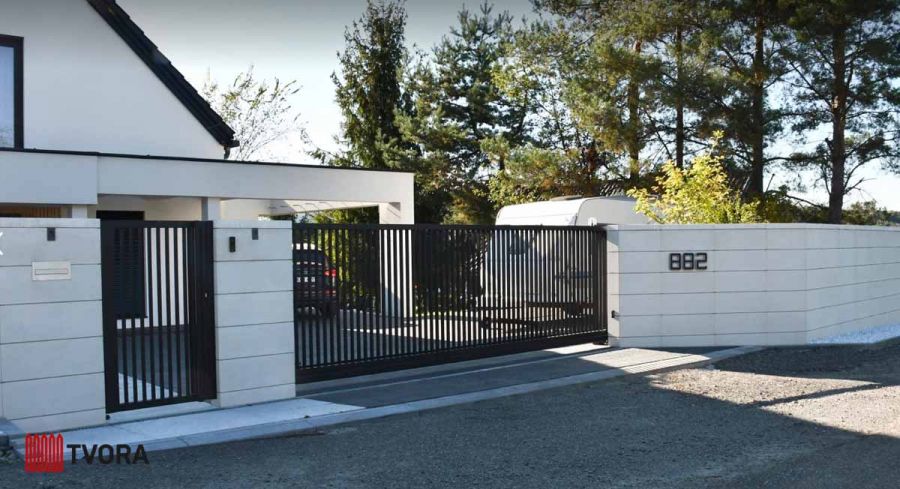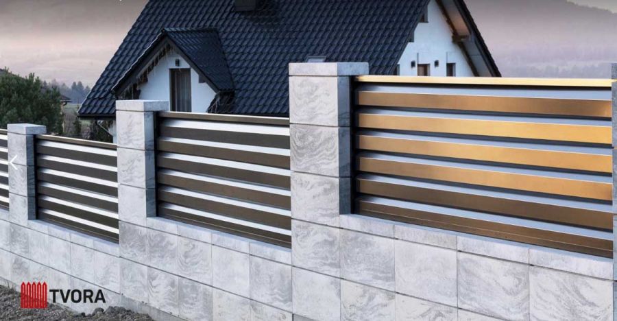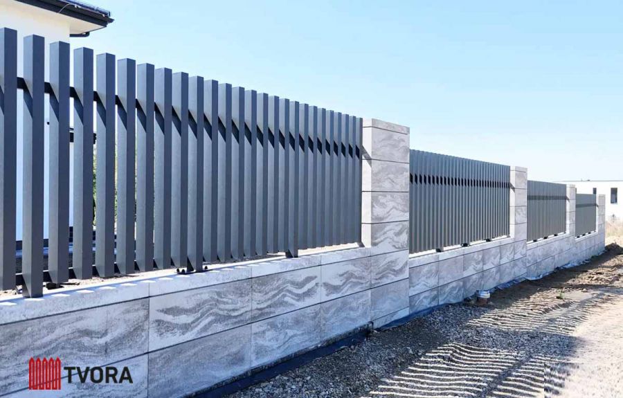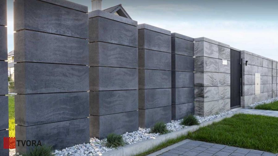 При монтаже массивных бетоных блоков не требуется обработка швов, поэтому сокращается время монтажа. Столбы и стенки сочетаются с любыми типами заборных панелей и могут быть использованы для дизайна дома современной архитектуры.